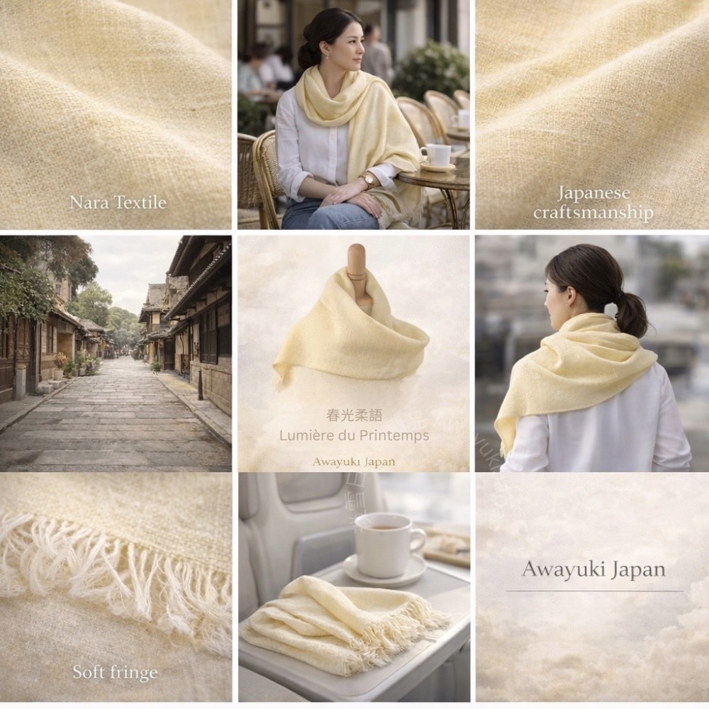 日本製 披巾_奈良織物_春光柔語 Lumière du Printemps (80×185cm) 圍巾 披肩 日夜溫差 春夏穿搭 冷氣房必備 換季必備 防冷 遮陽 旅遊