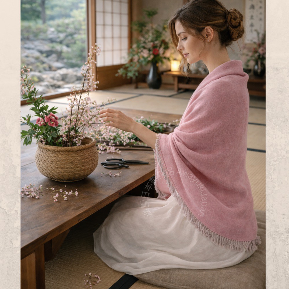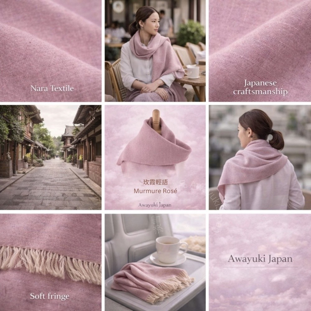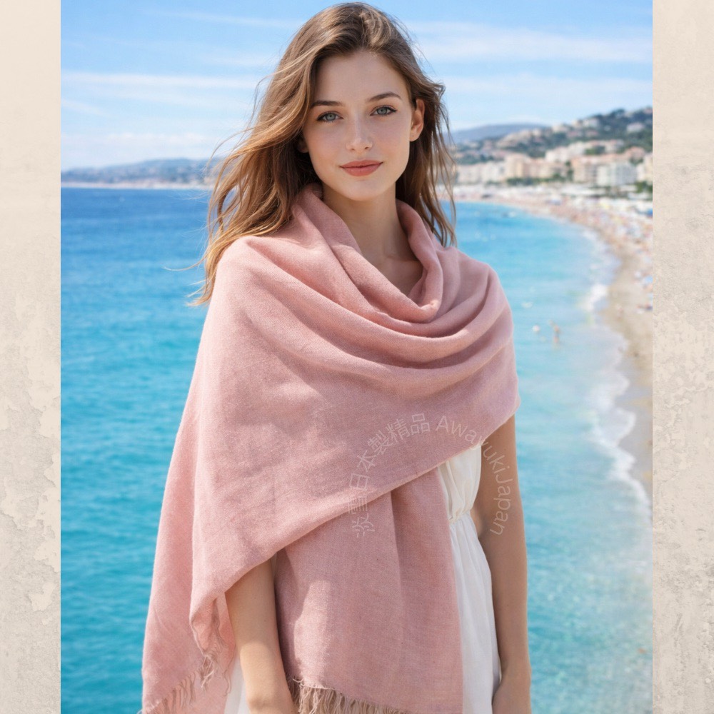 日本製 披巾_奈良織物_玫霞輕語 Murmure Rosé (80×185cm) 圍巾 披肩 日夜溫差 春夏穿搭 冷氣房必備 換季必備 防冷 遮陽 旅遊